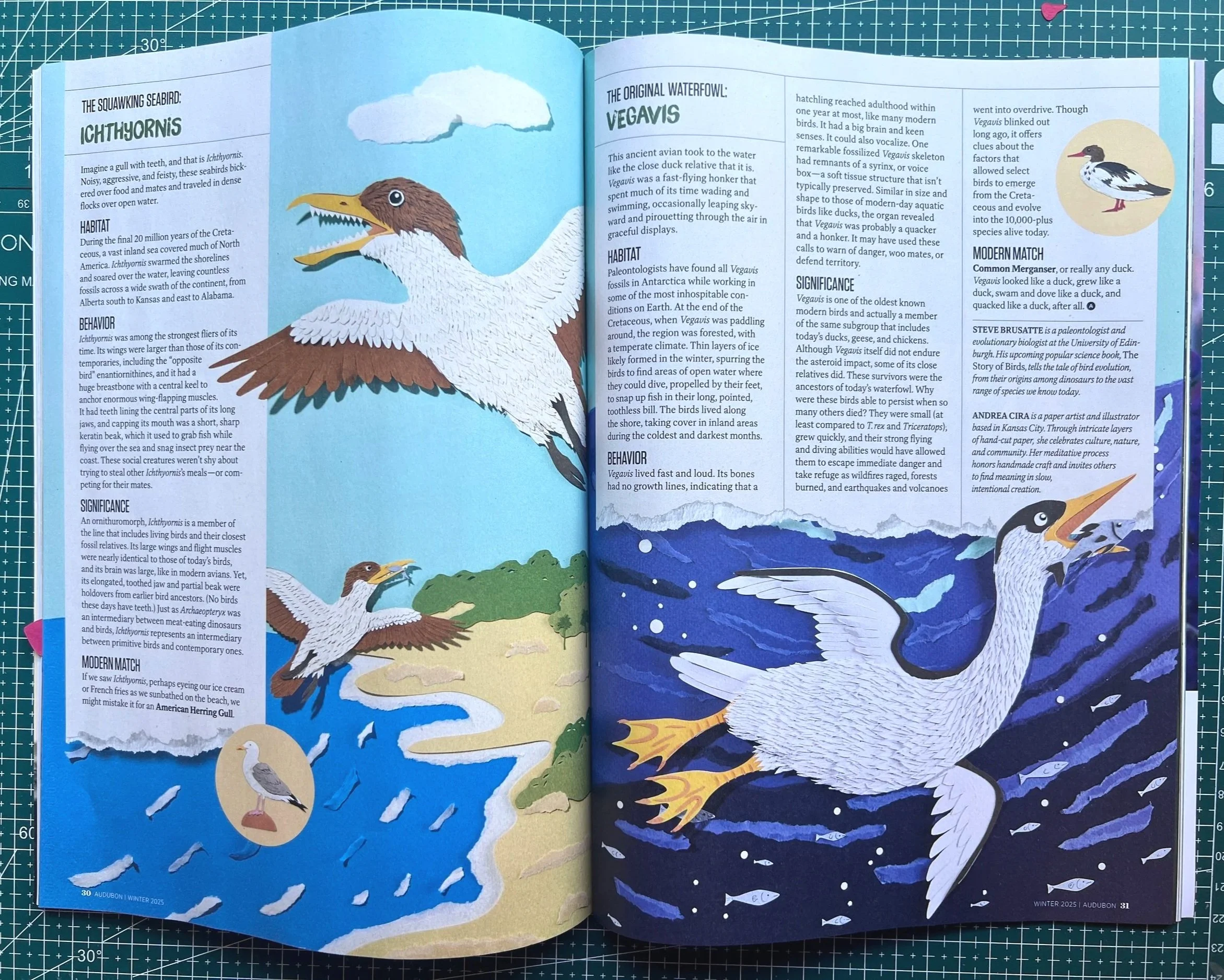 For the Winter 2026 edition of National Audubon Society magazine, I created a series of hand-cut paper illustrations exploring ancient birds that lived during the age of dinosaurs.